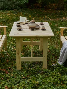 Стол: Прямоугольный стол станет центральным элементом вашей зоны отдыха, идеально подходя для семейных обедов, дружеских посиделок или просто чаепития на свежем воздухе.