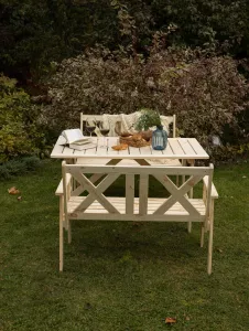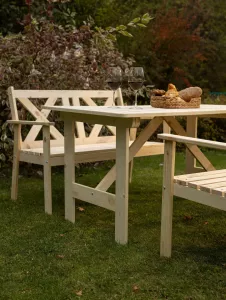 Стол: Вместительный прямоугольный стол (130 х 80 х 71 см) станет идеальным местом для семейных обедов, дружеских посиделок или чаепития на свежем воздухе.