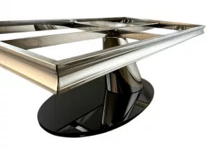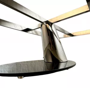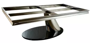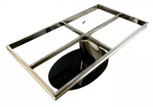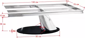 Подстолье для журнального стола из полированной нержавеющей стали (зеркальное) . В основании закаленное стекло толщиной 15 мм. Рама под столешницу размером 126х66 см. Характеристики