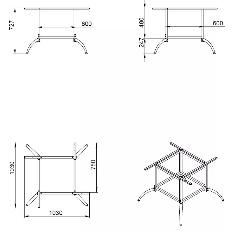 Подстолья изготавливаются из ЧУГУНА и стали с применением технологии порошкового крашения металла. Поставляется в разобранном виде. Возможна покраска в любой цвет по каталогу RAL. Характеристики