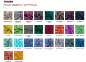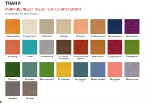 к/з "Lale", "BEST", "Kansas", Ткань "Velvet LUX", флок "FUROR TWIST", ткань "Mosaika", велюр "Vertical", велюр "Paradigma", иск.замша "Magnum"