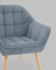 Оригинальное мягкое дизайнерское кресло с удобными подлокотниками. Ножки выполнены из массива гевеи. В качестве обивки используется износостойкая прочная ткань шенилл, которая не истирается и не линяет со временем. Кресло отличает толстая спинка и сиденье, украшенные красивой строчкой, которая добавляет креслу интересной фактуры. Каркас выдерживает нагрузку до 120 кг.