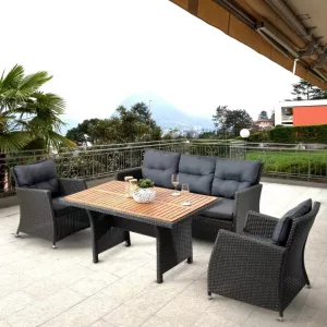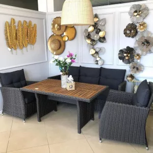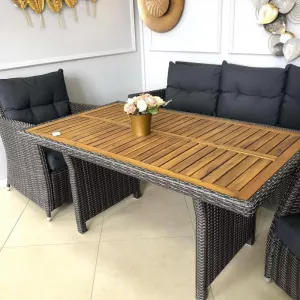 Обеденный комплект из искусственного ротанга/акация коричневый