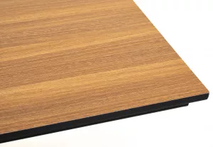 Двойное подстолье изготовлено из металла, столешница - из высококачественного монолитного компакт-пластик HPL, толщиной 12 мм, цвет «дуб».