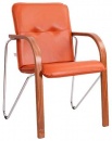 Блеск прочного и необычного по форме хромированного каркаса выгодно контрастирует с теплым оттенком мягкой поверхности сидения и спинки этого стильного кресла для посетителей. Удобные подлокотники из натурального дерева обеспечивают дополнительный комфорт. Кресло способно привнести нотку домашнего уюта в строгое оформление современных офисных помещений. Предложите посетителям расположиться в нём с чашечкой кофе или стаканом прохладительного напитка, и беседа обязательно потечёт в нужном вам русле.Обивка черный кожзам. По наличию на складе.