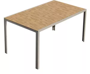 Воплощение практичности и эстетики. Все изделия выполнены на прочном алюминиевом каркасе с долговечным порошковым покрытием серого цвета, что гарантирует устойчивость к коррозии и атмосферным воздействиям. Столешница и сиденья кресел изготовлены из полимерного дерева под тиковое дерево, имитирующего натуральную древесину с ее благородной текстурой. Толщина полимерной доски в 20 мм обеспечивает прочность и долговечность, а также легкость в уходе.