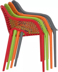 Пластиковые кресла серии с перфорированными сиденьем и спинкой станут отличным выбором для обстановки фуд-кортов, кафе, ресторанов и баров. Благодаря использованию высококачественных материалов они долгое время не теряют своего привлекательного внешнего вида, даже несмотря на активную эксплуатацию. Благодаря устойчивости к ультрафиолетовому воздействию и отсутствию металлического каркаса пластиковые кресла можно использовать в том числе и на открытых площадках.