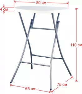 Размер стола Диаметр Высота: | 80 х 110 см |