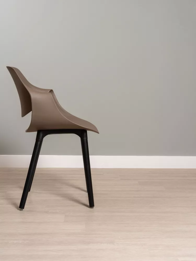 Элегантный дизайнерский пластиковый стул с мягко изогнутыми формами и оригинальной архитектурой сиденья. Его характерная особенность «вылетающие» в стороны подлокотники и текстурированная спинка, создающие эффект визуальной лёгкости и динамики. Такая форма не только придаёт стулу выразительный внешний вид, но и обеспечивает комфорт при длительном использовании.
