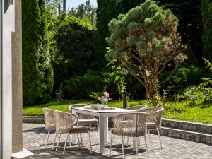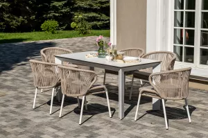 Обеденная группа предназначена для комфортного размещения 6 персон и станет отличным дополнением к вашей территории для проведения трапезы с друзьями или семьей. Комплект из стола и 6 стульев выполнен в едином стиле, комбинируя качественные материалы и современный дизайн.