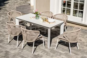 Плетеная обеденная группа на 6 персон алюминий/роуп