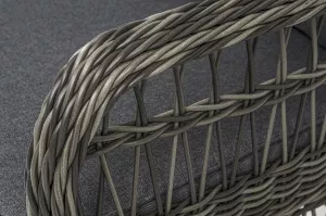 Алюминиевый каркас находится в основе мебели. Он характеризуется устойчивостью и высокой прочностью. Задекорирован ручной круглой оплеткой, которая сделана из искусственного ротанга. Представлена в графитовом оттенке.
