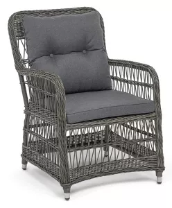 Кресло из искусственного ротанга плетеное имеет практичные подлокотники для удобного размещения во время отдыха.