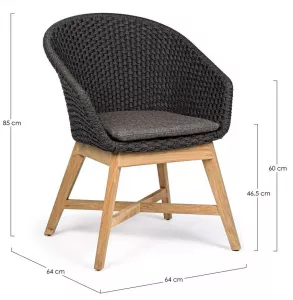 - Спинка и подлокотники оплетены канатами из олефина (100% полипропилен).
