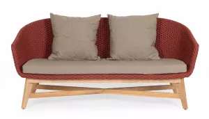 Плетеный диван тиковый с подушками, алый