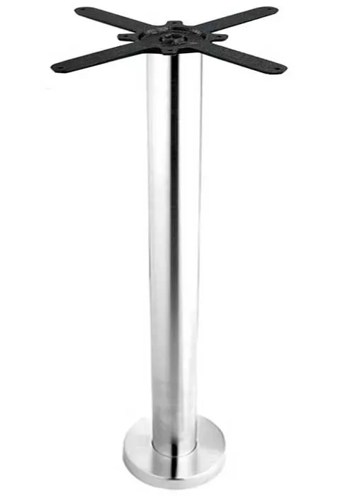 Подстолье с креплением к полу. Материал: полированная нержавеющая сталь (матовая). Размер крестовины: D45 см, диаметр трубы 7,6 см. Рекомендуемый размер столешницы: D-80, 80х80