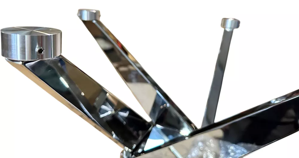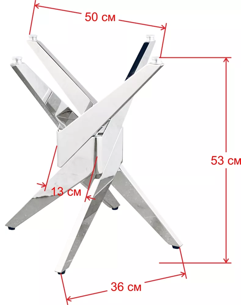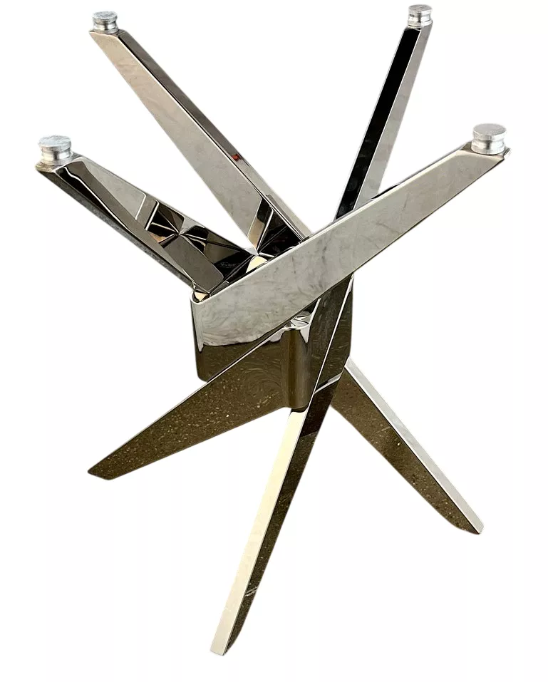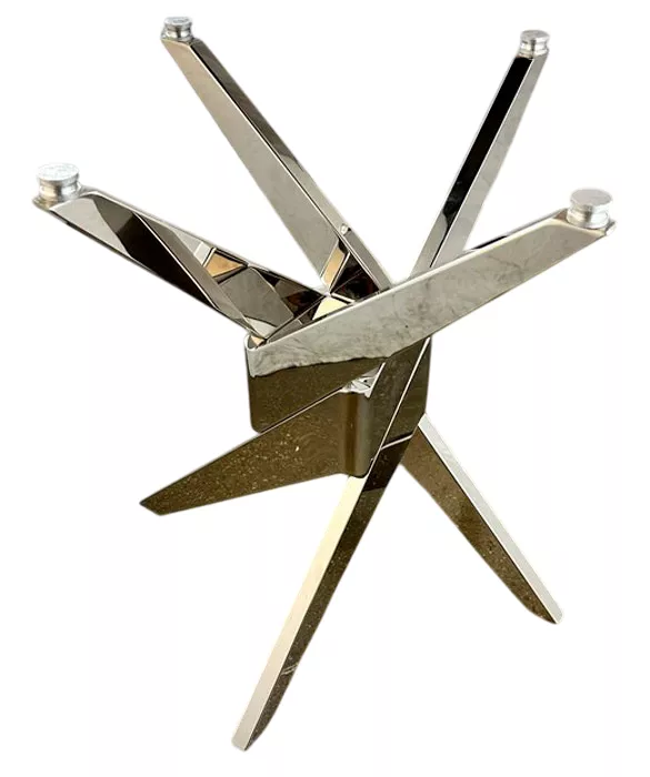 Подстолье для журнального стола из полированной нержавеющей стали (зеркальное). Лаковое покрытие. Рекомендуемый размер столешницы: D80, 70х70 см. Характеристики