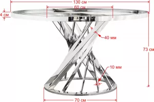 Подстолье из полированной нержавеющей стали (зеркальное). Лаковое покрытие. Рекомендуемый размер столешницы: D 150 см. Характеристики