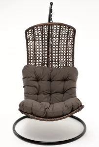 Уютное садовое подвесное кресло-кокон для организации лаунж-зоны. Основание изготовлено из стали окрашенного порошковой износостойкой краской черного оттенка, вручную оплетенного плоским искусственным ротангом коричневого цвета. Этот материал не боится перепадов температуры, прямых солнечных лучей, дождя и ветра.