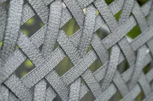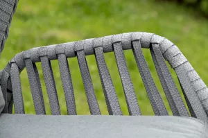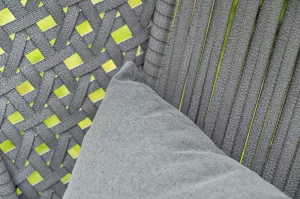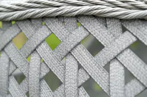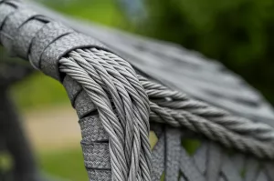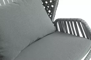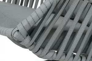 Каркас изготовлен из стали, окрашенного порошковой износостойкой краской черного цвета. Оплетка плоский искусственный ротанг серого оттенка. Материал устойчив к перепадам погоды и подходит для использования на открытых пространствах.