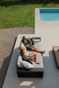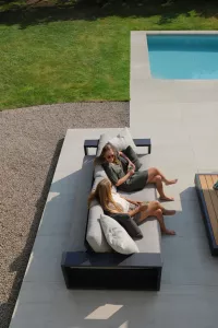 Поднимите круглую спинку и переверните ее. Подушки смещаются вместе с ней, мгновенно создавая более глубокое и удобное сиденье идеальное для чтения, непринужденной беседы или кофе у бассейна.