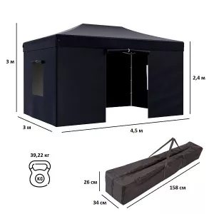 Садовый шатер 3х4,5 беседка быстросборная, черный