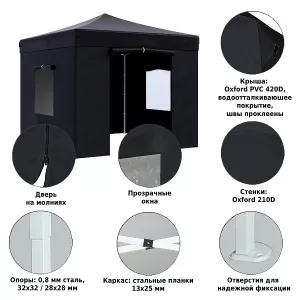 Шатер 3х3 м быстросборный, черный