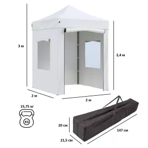Шатер быстросборный садовый тент практичное и популярное решение для использования на пикниках, шашлыках и кемпинге, а также в качестве дачной беседки. Тент-шатер для сада прекрасно защищает от солнца. Он быстро раскладывается «гармошкой», его установка занимает считанные минуты. В тенте есть 1 дверь и 2 окна.