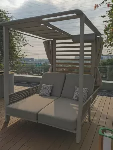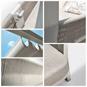 Двухместный лежак выделяется своей простотой и способностью улучшать пространство на свежем воздухе. Алюминиевая конструкция с порошковым покрытием, обивка из олефина для двойного сиденья, которое позволяет двум людям удобно лежать рядом друг с другом, чтобы загорать вдвоем! Идеальное сочетание материалов: тепло, исходящее от роупа с одной стороны, и прочность алюминия в конструкции с другой. Лежак для 2-х - это удачное дополнение к Вашему открытому пространству! Он отлично подходит для летних дней, для полуденного отдыха в тени и прохладе, для хорошего самочувствия и веселья с близкими, ведь с нем каждая деталь посвящена удовольствию.