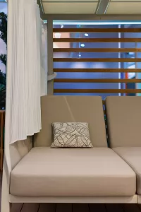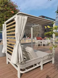 Применение специально разработанных материалов позволяет использовать лежак на открытом воздухе в полной безопасности, обеспечивая максимальную защиту от атмосферных воздействий без ущерба для эстетики и комфорта.