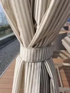 - Регулируемые шторы по бокам выполнены из солнцезащитной ткани.