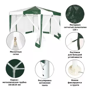 Шатер садовый из полиэтилена практичное и популярное решение для использования на даче, пикниках, шашлыках и кемпинге. Крыша тента защитит от солнца, а москитные сетки избавят от насекомых. Тент садовый из полиэтилена быстро и несложно монтируется и закрепляется с помощью растяжек.