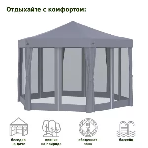 Шатер садовый из полиэстера практичное и популярное решение для использования на даче, пикниках, шашлыках и кемпинге. Крыша тента защитит от солнца. Тент садовый из полиэстера быстро и несложно монтируется и закрепляется с помощью растяжек.
