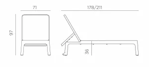 Разработанный Раффаэлло Галиотто, лежак представлен в пяти элегантных вариантах тон в тон и покрыт съёмной воздухопроницаемой тканью, обеспечивающей прочность и долговечность даже при частом использовании. Лежак оснащен четырьмя положениями регулировки спинки, нескользящими ножками и встроенными колесиками для лёгкого перемещения.