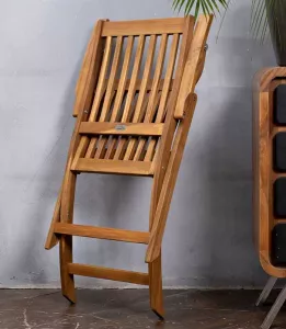 Складные стулья из акации из этой коллекции могут складываться, что позволяет значительно экономить место при хранении.