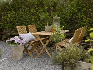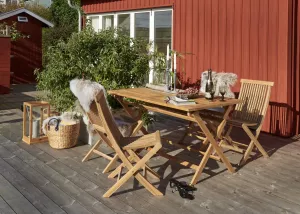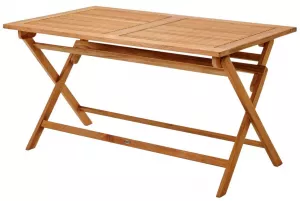 Создатели этого прямоугольного складного стола из натурального тика основной целью ставили достижение максимальной легкости конструкции и весьма в этом преуспели. Стол, действительно, обладает минимальным весом, не вызывает хлопот при устройстве на длительное хранение, а его натуральные поверхности устойчивы к неприятным воздействиям внешней среды. Он поистине идеален для оформления фуршетных вечеринок на лоне природы. Поскольку, обладая перечисленными ранее достоинствами, имеет при этом достаточно большую площадь столешницы и весьма надежное основание конструкции. Характеристики