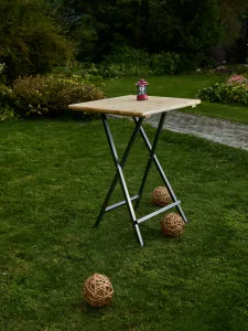 Стол складной барный - это практичная и функциональная мебель, которая станет незаменимым помощником в кафе или на природе. Она обладает приятным натуральным оттенком и будет гармонично смотреться в любом саду или на террасе. Каркас стойки изготовлен из металла, что гарантирует её прочность и долговечность. Столешница выполнена из дерева, что придает стойке натуральный и теплый вид. Особенностью стойки является её складная конструкция. Это позволяет легко переносить её и хранить, когда она не используется. Выбирая стол, вы получаете не только стильный и практичный элемент мебели, но и гарантию качества и надежности.