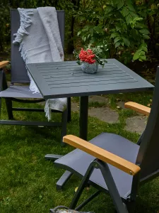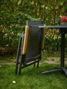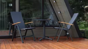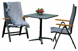 Комплект создан для того, чтобы служить вам долгие годы. Стол и кресла изготовлены из высококачественного нержавеющего алюминия, который не подвержен коррозии и легко выдерживает испытания временем. Покрытие порошковой краской цвета антрацит не только придает комплекту стильный и современный вид, но и обеспечивает дополнительную защиту от влаги, атмосферных воздействий и механических повреждений.