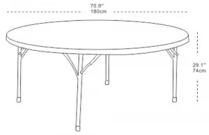 Размер стола Диаметр Высота: | 180 х 74 см |