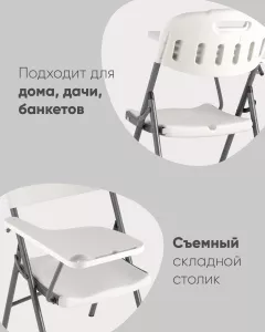 Наши складные пластиковые стулья с пюпитром не только практичны и долговечны, но также стильны и современны. Их легко транспортировать и хранить, что делает их отличным выбором для любого мероприятия.