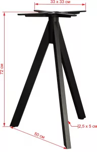 Стильное черное подстолье в стиле лофт. Цвет черный матовый. Порошковое напыление. Рекоменд. макс. размер столешницы - D70, 60x60 см. Характеристики