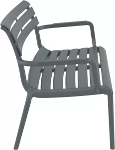 Штабелируемый двухместные скамейки изготавливается из полипропилена, упрочненного стекловолокном, полученным с использованием новейшего поколения технологий формования пластмасс под давлением. Модель с нескользящими ножками прекрасно подходит для использования внутри и снаружи помещений. В коллекцию также входят большой кофейный столик и маленький боковой столик, который может служить подставкой для ног, идеально соответствующей стилю силуэта дивана.