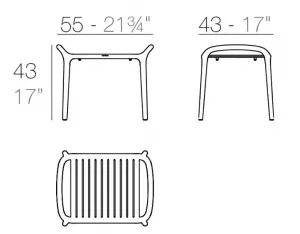 Материал: полипропилен, армированный стекловолокном, изготовленный методом впрыска газа. Устойчивость к воздействию ультрафиолетовых лучей. Устойчивость к экстремальным температурам, негорючесть. Сертификаты UNE-EN 581-1/2/3, ANSI/BIFMA X5.4, ISO 4892-2. Пожаротехнические характеристики согласно стандартам: UNE EN 1021, IMO A.652, UNI 9175, BS 5852. Ударопрочность. Материал 100% подходит для вторичной переработки.
