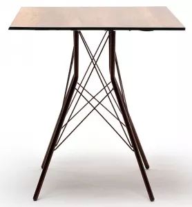 Каркас изготовлен из стали, окрашенной в матовый медный цвет. В качестве столешницы использован высококачественный монолитный компакт-пластика HPL, толщиной 12 мм. Цвет поверхности «дуб».