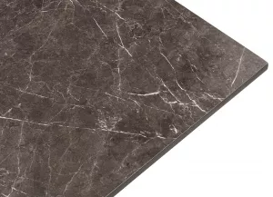 Обеденный квадратный стол со столешницей из HPL в цвете «серый мрамор». Это высококачественный ударопрочный компакт-пластик, обладающий низкой пористостью, что предотвращает впитывание жидкостей, поэтому столы из HPL идеально подходит для обеденных зон. Толщина столешницы 12 мм.