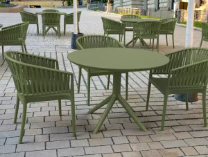 Стол пластиковый для дачи круглый, оливковый 105 см