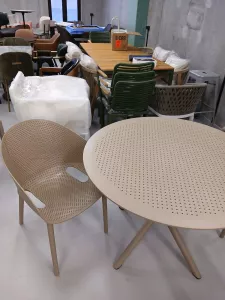 Стол пластиковый для кафе круглый, бежевый 105 см. Купить!