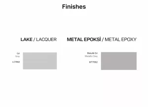 - Доступны варианты столешниц: металл, шпон, ламинат. Возможные цвета указаны в палитре. Подробнее ознакомиться с палитрой.
