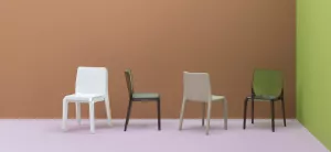 Это стул с ярко выраженной индивидуальностью, который благодаря своей успокаивающей, но изысканной форме легко вписывается в любую обстановку. Он был создан для гостиничного использования, но вследствии своего минималистичного стиля подходит и для домашнего интерьера. Он изготовлен из поликарбоната и включает в себя несколько цветовых вариантов, включая прозрачные цвета и полноцветные. Структура стула очень легкая. но в тоже время прочная.