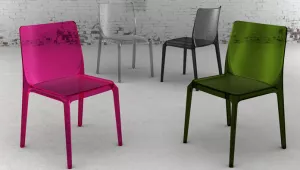 - Стул полностью выполнен из поликарбоната, устойчивого к ультрафиолетовому излучению. Посмотреть каталог отделок.